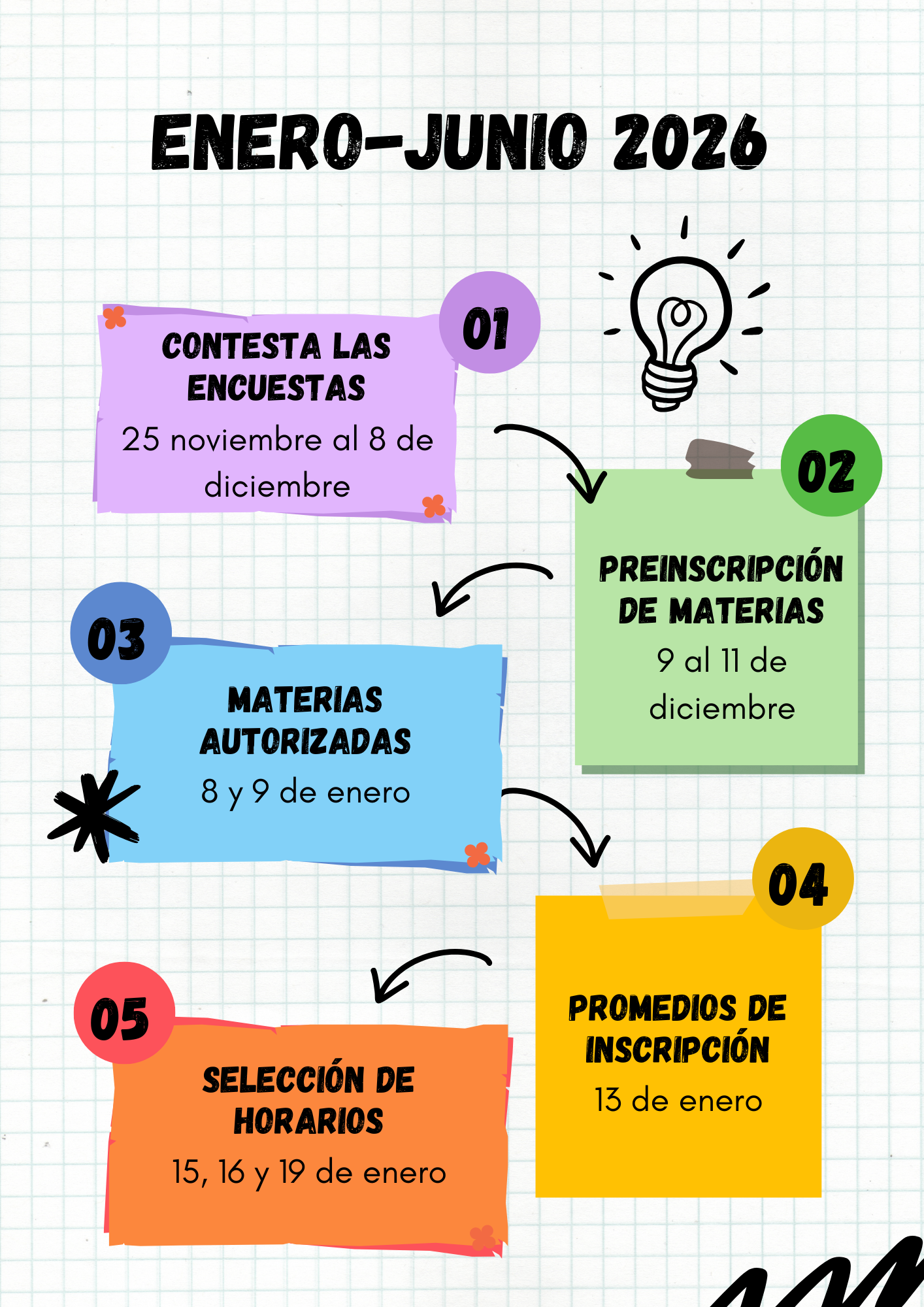 - Adelanto de materias por promedio conforme a la convocatoria disponible del 9 al 11 de diciembre en el siguiente formulario de registro.